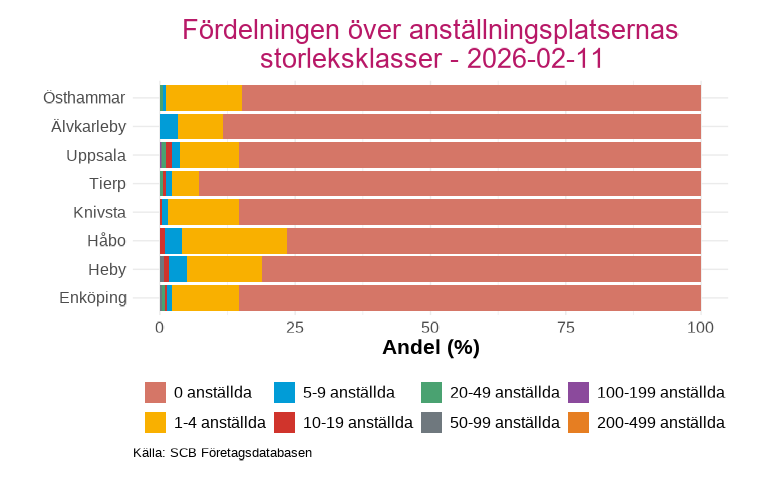 Arbetsställenas branscher och storleksklass
