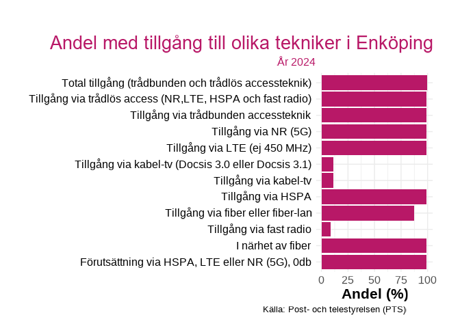 Figuren visar andelen med tillgång till en viss teknik inom hushåll i  Enköping , för år 2024