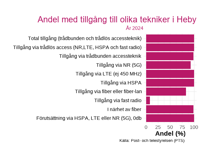 Figuren visar andelen med tillgång till en viss teknik inom hushåll i  Heby , för år 2024
