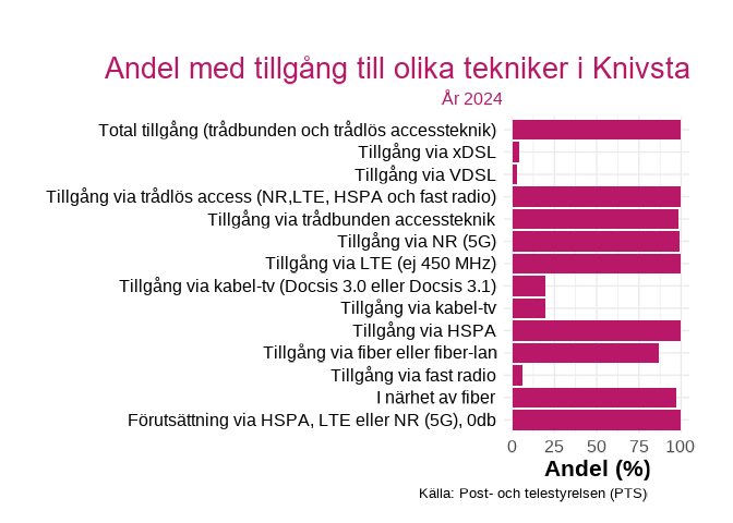 Figuren visar andelen med tillgång till en viss teknik inom hushåll i  Knivsta , för år 2024