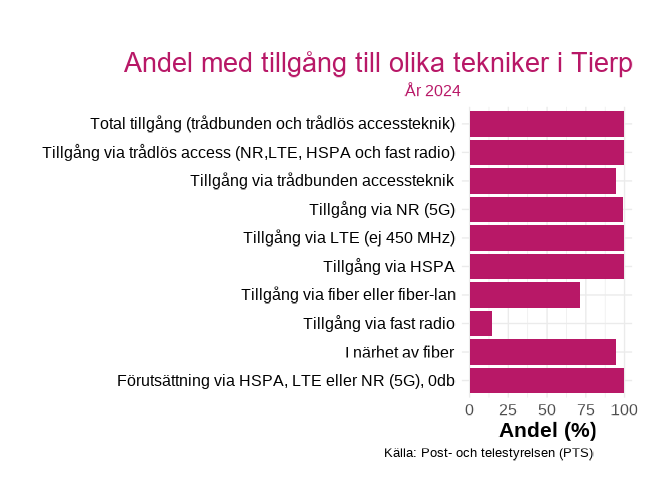 Figuren visar andelen med tillgång till en viss teknik inom hushåll i  Tierp , för år 2024