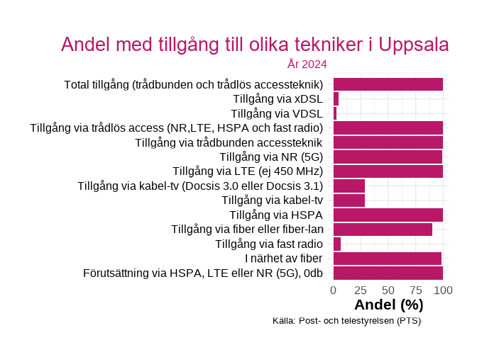 Figuren visar andelen med tillgång till en viss teknik inom hushåll i  Uppsala , för år 2024