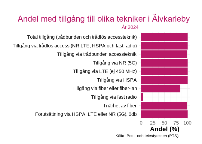Figuren visar andelen med tillgång till en viss teknik inom hushåll i  Älvkarleby , för år 2024