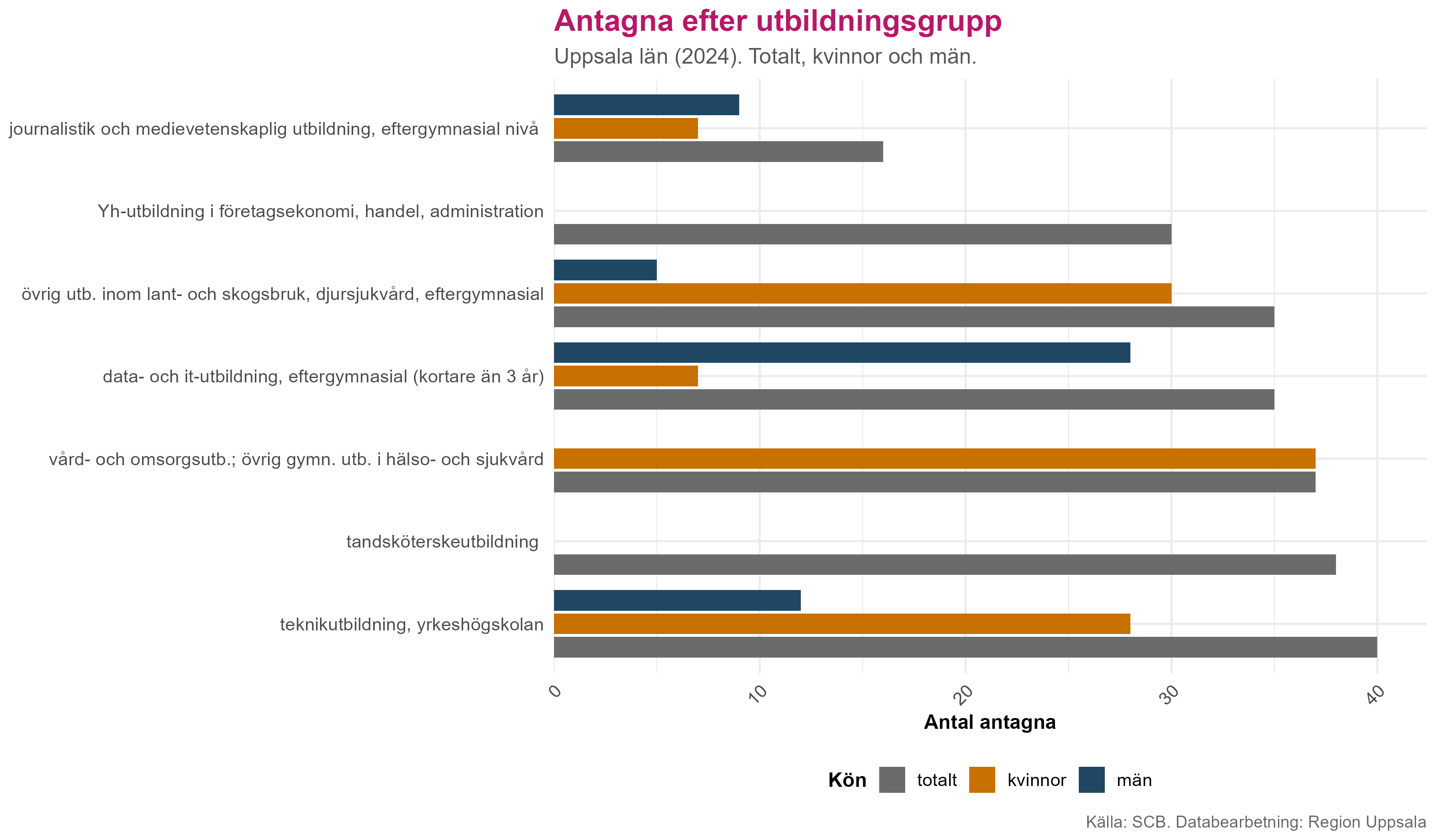 Figuren nedan visar antalet antagna till yrkeshögskolan i Uppsala län, baserat på den region där utbildningen bedrivs.